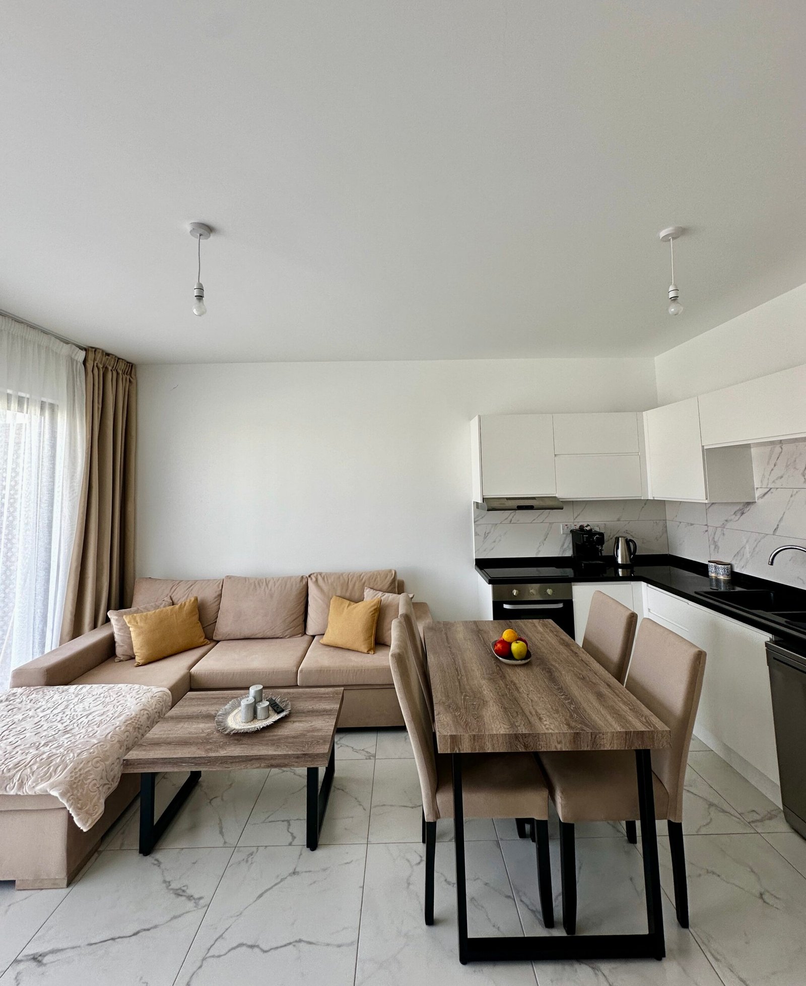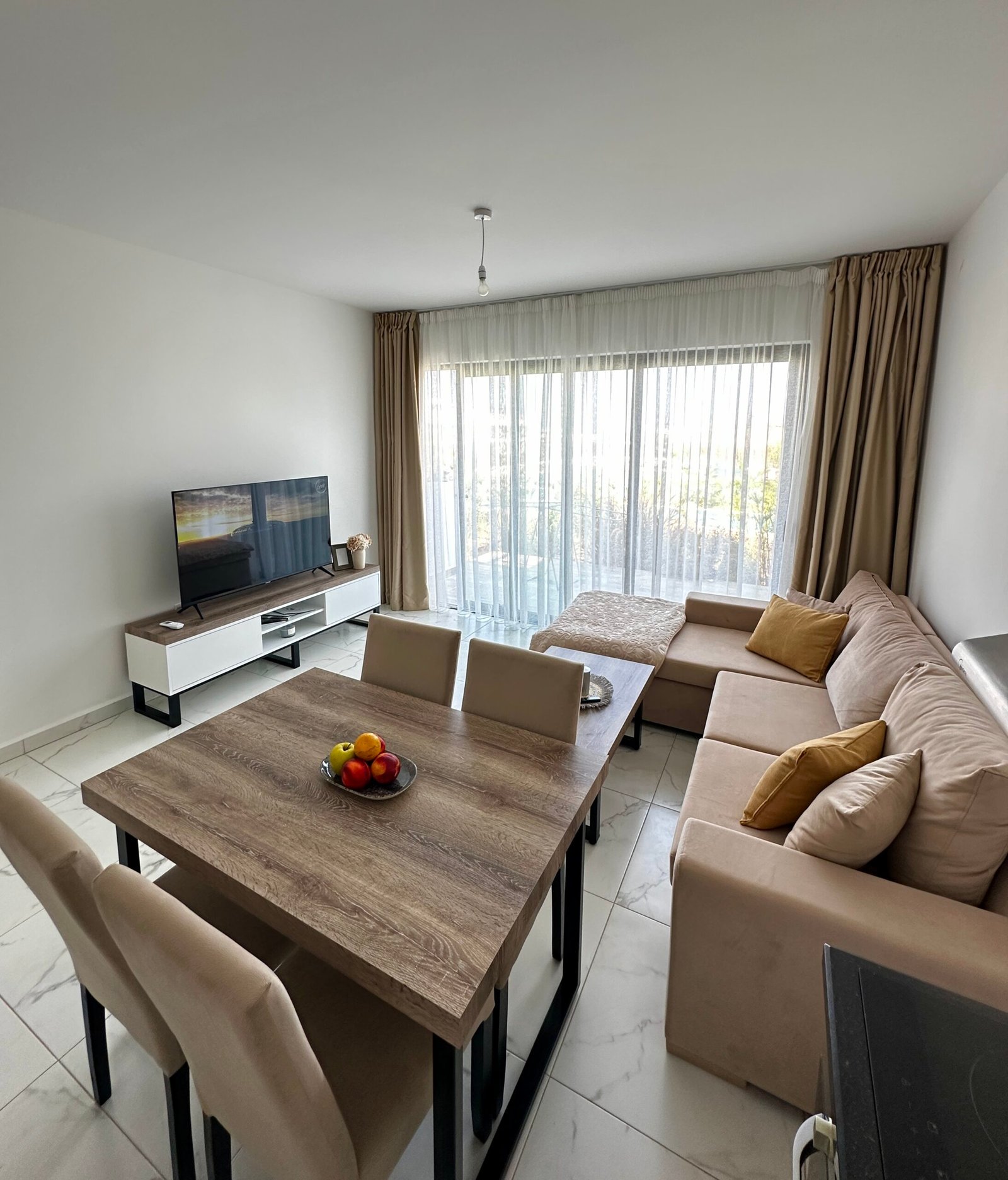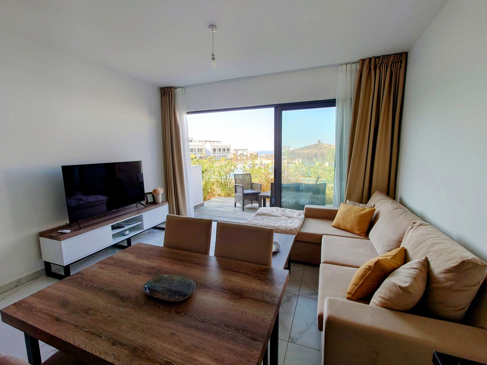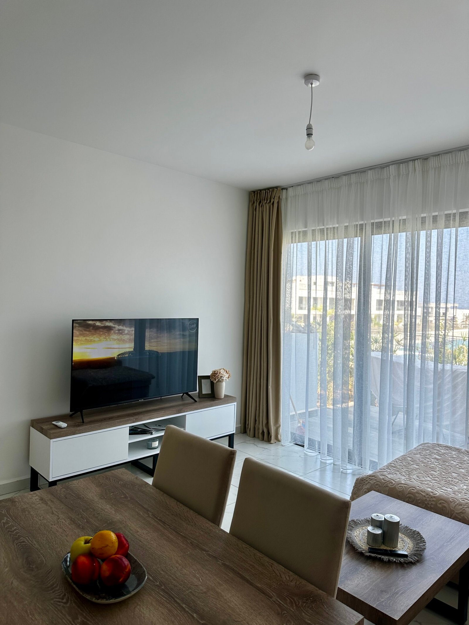 During your stay, you’ll have full access to the fantastic facilities offered within the complex. Take a refreshing dip in the outdoor pool, soak up the sun on the loungers, or enjoy a drink at the poolside bar. For those seeking relaxation, there’s an indoor pool and spa facilities available, perfect for unwinding after a day of exploring the local area. Additionally, guests can dine at the nearby restaurant situated at the project’s end, just a short stroll from the apartment and overlooking the beach. Whether you’re here for a weekend getaway or an extended holiday, this apartment provides everything you need for a memorable stay in Bahceli Esentepe.
